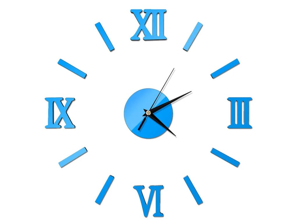 3D nástěnné hodiny římské číslice modré