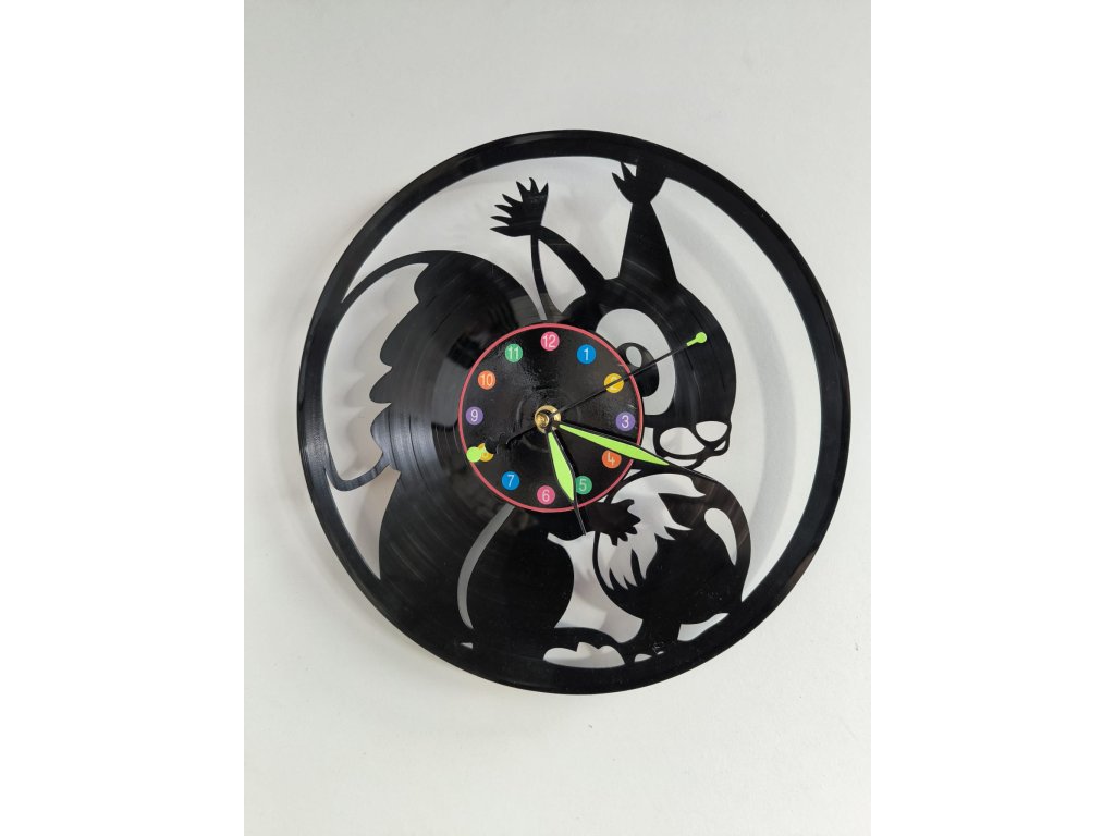 Vinylové hodiny veverka